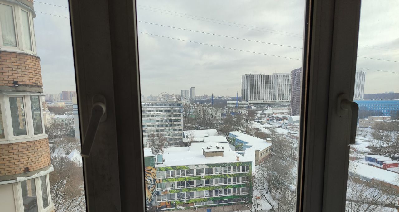 Сдается комната в трёхкомнатной квартире на 13м этаже, дом кирпичный, 2 лифта — грузовой и пассажирский. В одной из комнат живёт хозяйка квартиры и также в квартире проживает кошка. Холодильник, стиральная машина, телевизор и вай-фай.