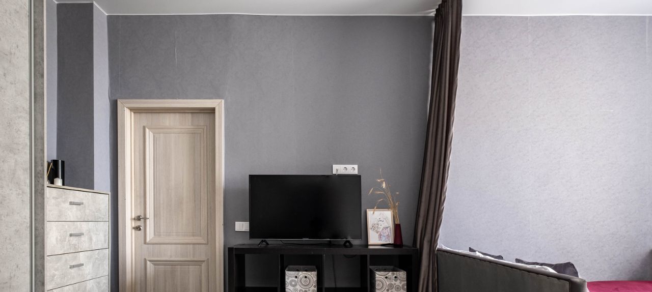 Гостиная зона с мягким диваном и телевизором Smart TV, Wi-Fi.