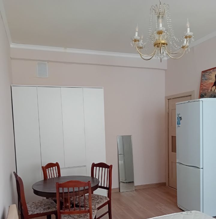 Сдается комната в трехкомнатной коммунальной квартире (проживание без собственника). В комнате выполнен ремонт в 2022 году. Полы ламинат, светлые обои, окно ПВХ, двуспальная кровать, комод, шкаф для одежды, холодильник, стол + 4 стула. Соседи - семейная пара, третья комната не сдаётся. Длительный срок найма, страховой депозит в рассрочку.