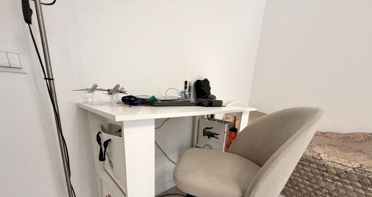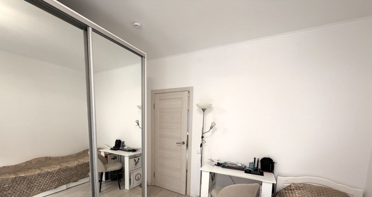 В комнате новые кровати из массива сосны с ортопедическим основанием, спальное место 90/200. Ортопедические матрасы, (цена 1 комплекта кровать+матрас 37 т.). 1 рабочее место. Новый зеркальный шкаф-купе со штангой и полками, размер Ш170/Г65/В240 + место для чемоданов. Постельное бельё хорошего качества, одеяло, подушка, покрывало.