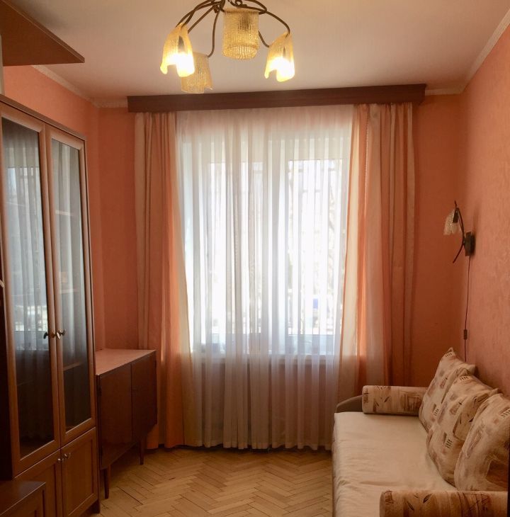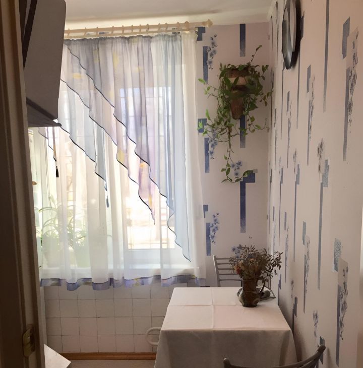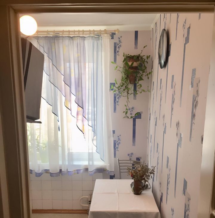 В квартире удачная планировка, выполнен ремонт. Пластиковые стеклопакеты. В комнате есть шкаф для хранения вещей, а так же двухспальный диван-кровать, телевизор. Окна выходят во двор.
