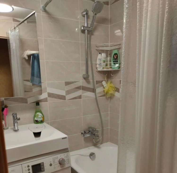 - совмещенный санузел с современной стиральной машинкой и полноценной ванной;