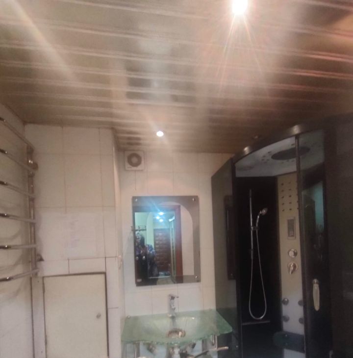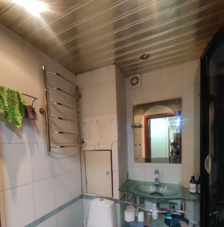 Санузел с душевой кабиной , окна во двор, открытая, стихийная парковка во дворе, удобный выезд на Мкад .