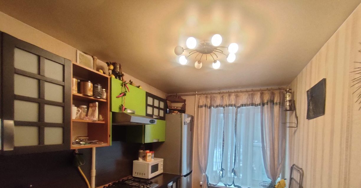 В квартире : телевизор на кухне, холодильник, стиральная машина, плита с духовкой, микроволновая печь.