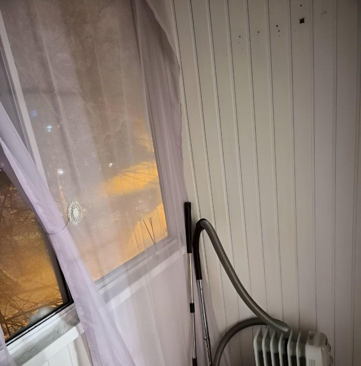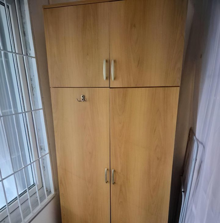 Балкон оборудован решетками(дверь+окно)для безопасности и большим шкафом для хранения.