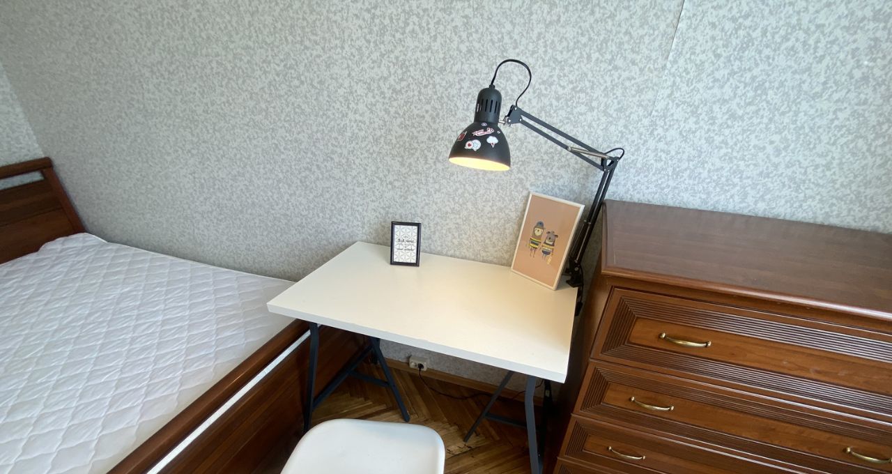 - В комнате: двуспальная кровать , отдельный очень шкаф-купе, тумба, стол со стулом , беспроводной wi fi .
