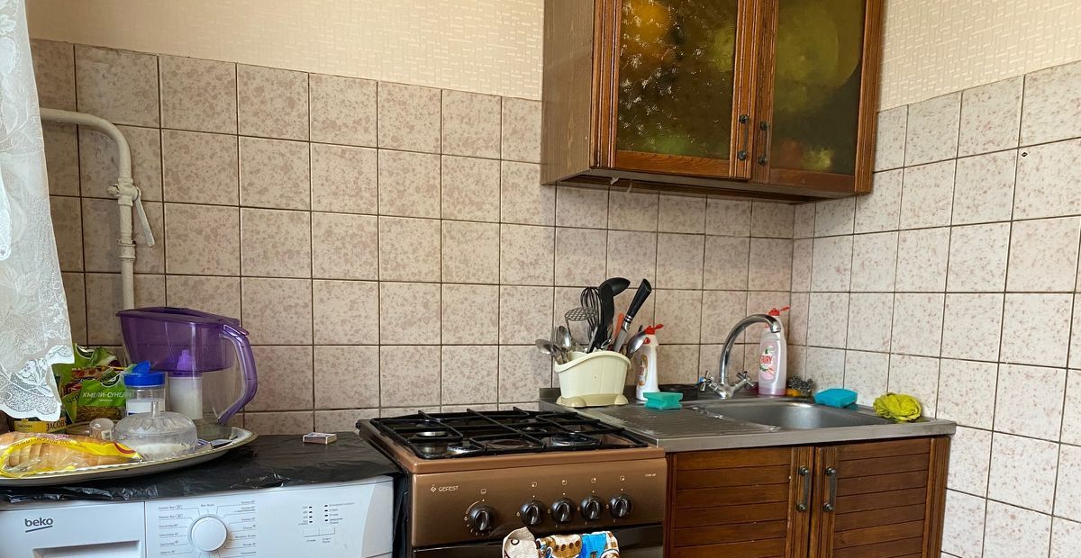 В кухне имеется вся бытовая техника (большой холодильник, плита, духовой шкаф, стиральная машинка).
