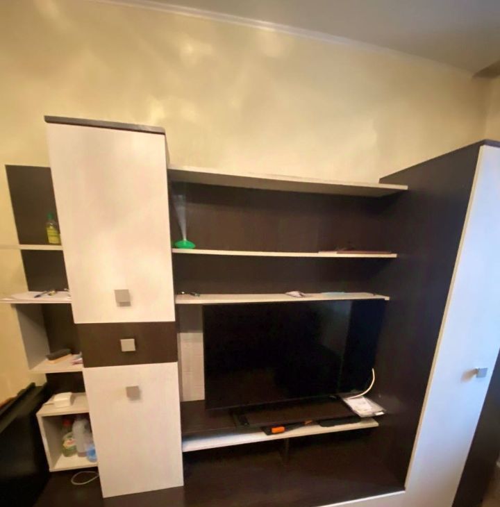 В комнате есть холодильник, телевизор, св-печь, диван, двух-спальная кровать, места для хранения вещей.