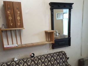 В комнате зеркальный шкаф-купе, большой комод, двуспальная кровать, тумба прикроватная (Икея), кресло-качалка.