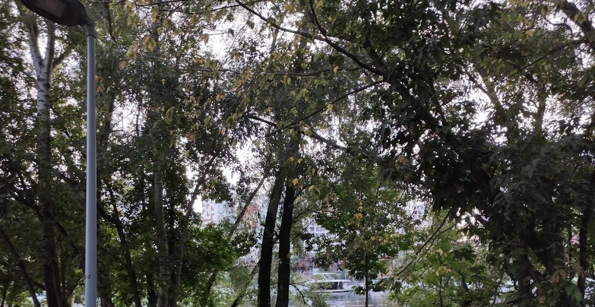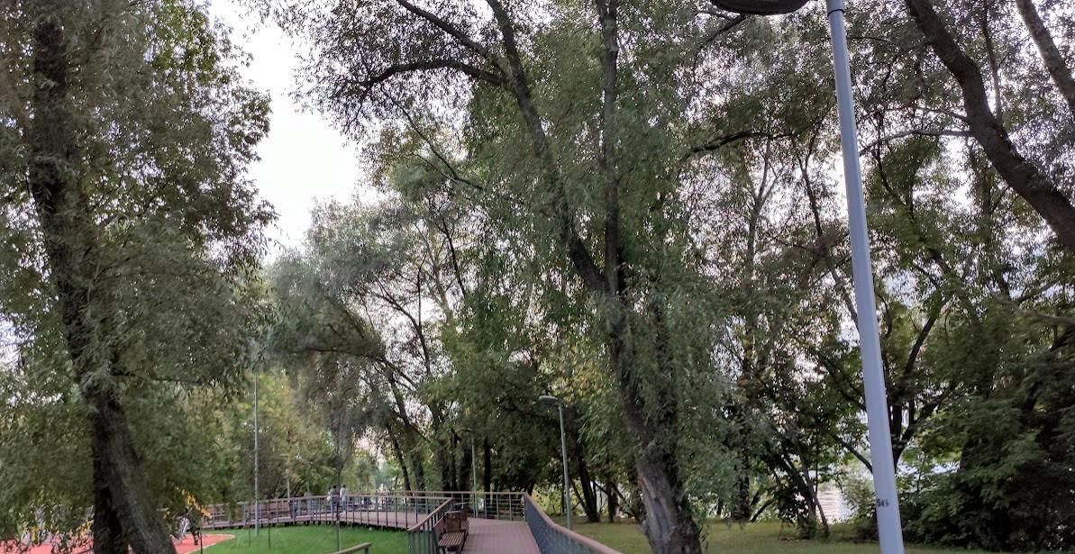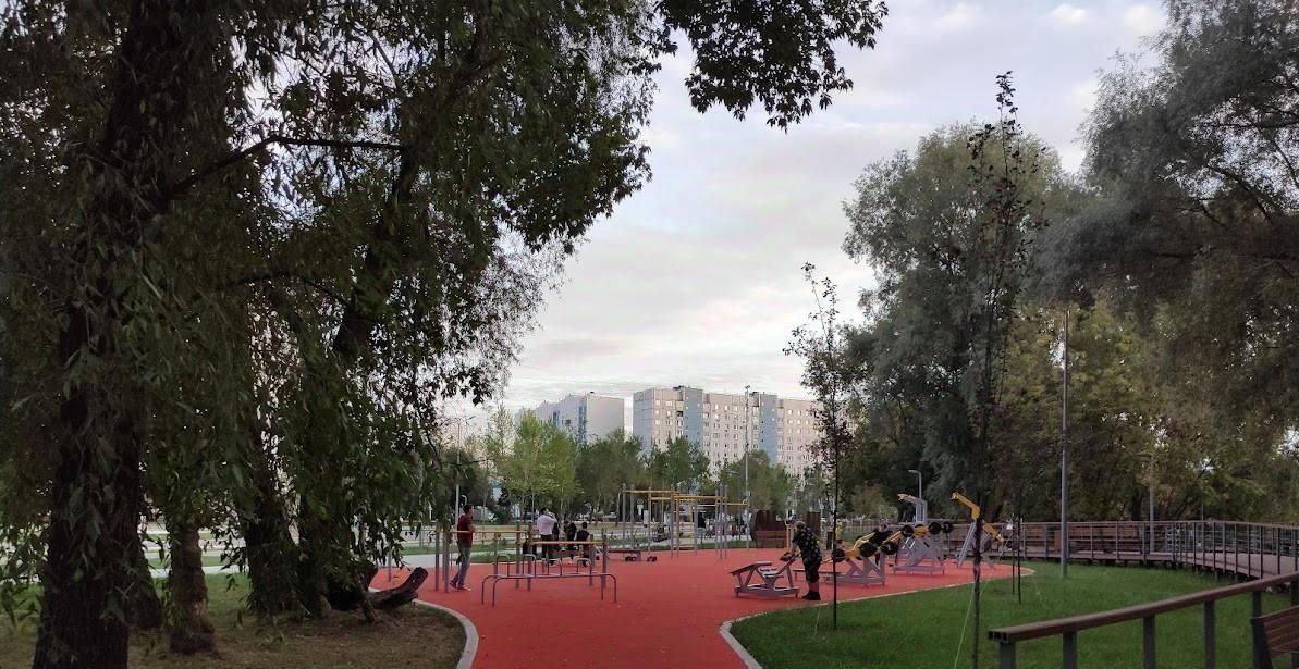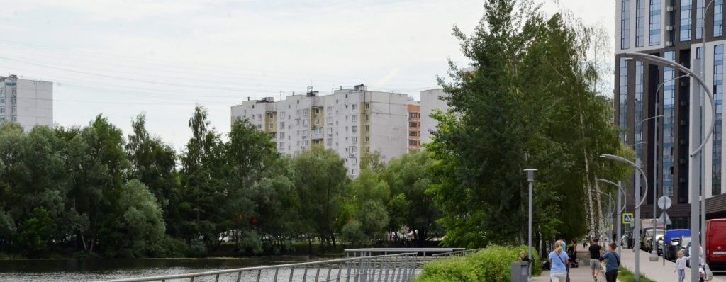 Рядом парк, красивая благоустроенная набережная у реки, продуктовые маркеты и автобусные остановки в шаговой доступности.