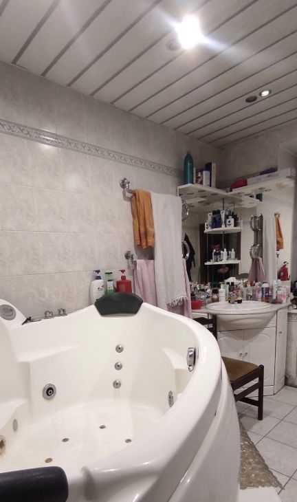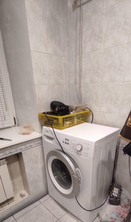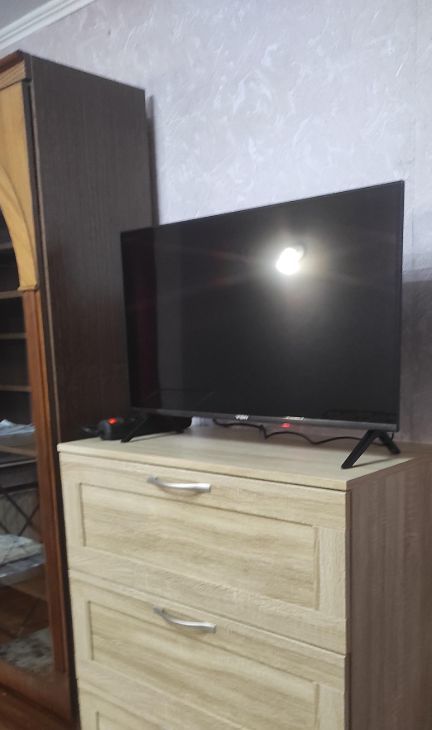 Из техники в комнате новый тетевизор, новая гладильная доска, новый утюг, новая сушка для белья, новый инвентарь для уборки, в коридоре индивидуальный холодильник, в ванной стиральная машина, на кухне микроволновая печь, электроплита.