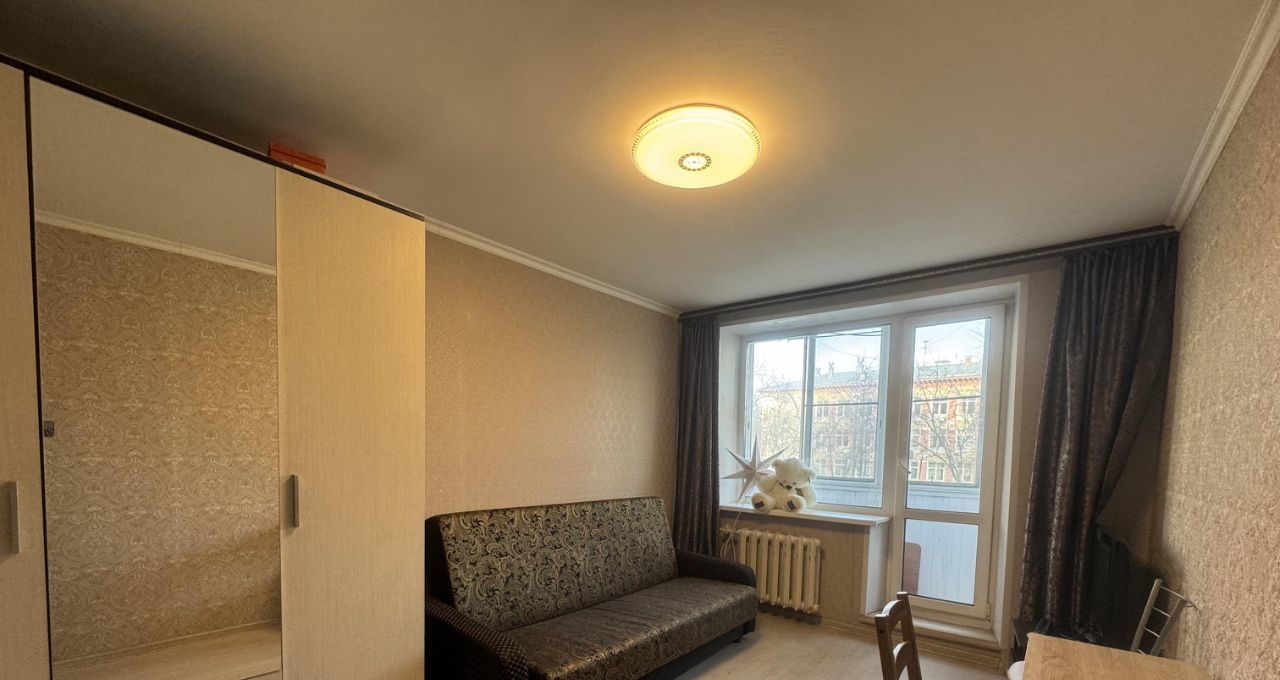 В комнате диван и шкаф ( на первом и 2м фото стол и зеркало девушки что раньше там жила)