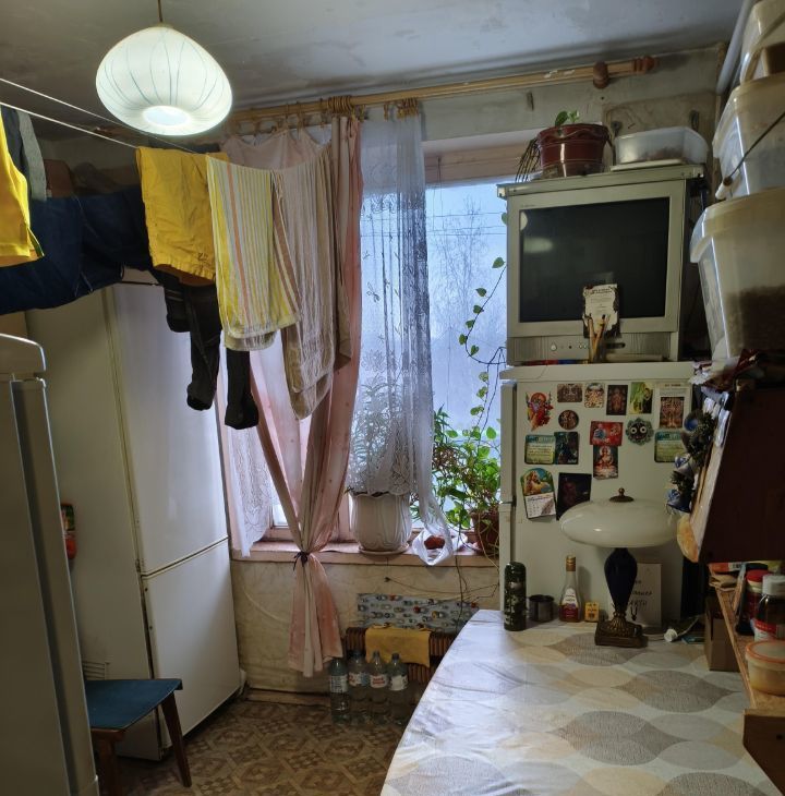 Проходная комната в четырёхкомнатной квартире. Чисто, аккуратно. Цена включает в себя коммуналку.