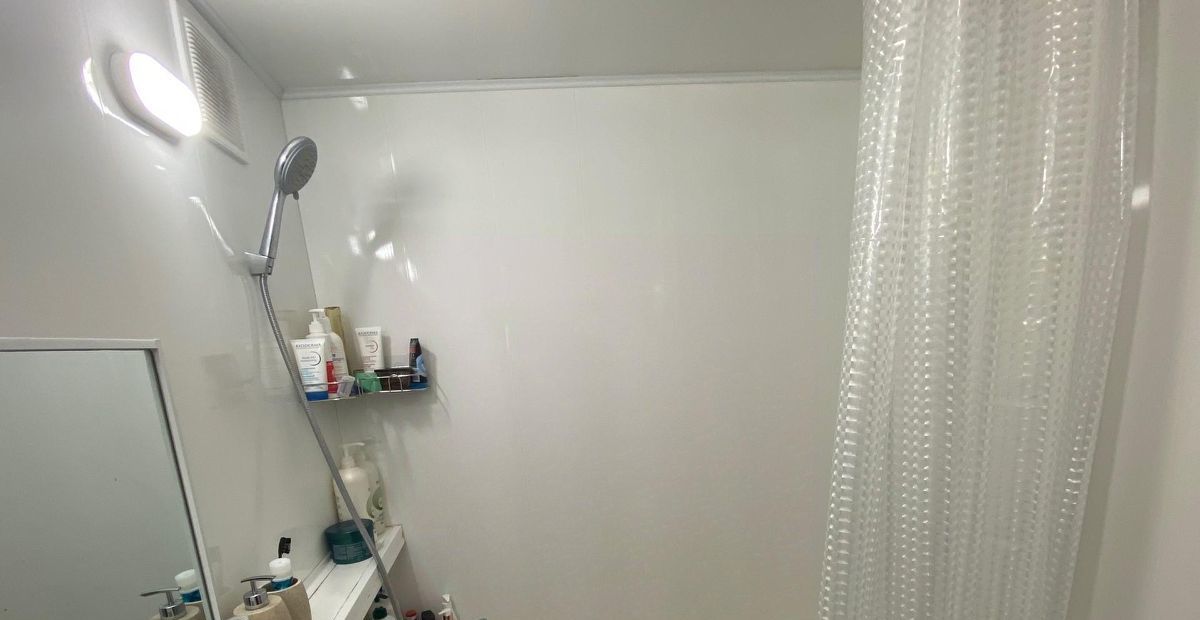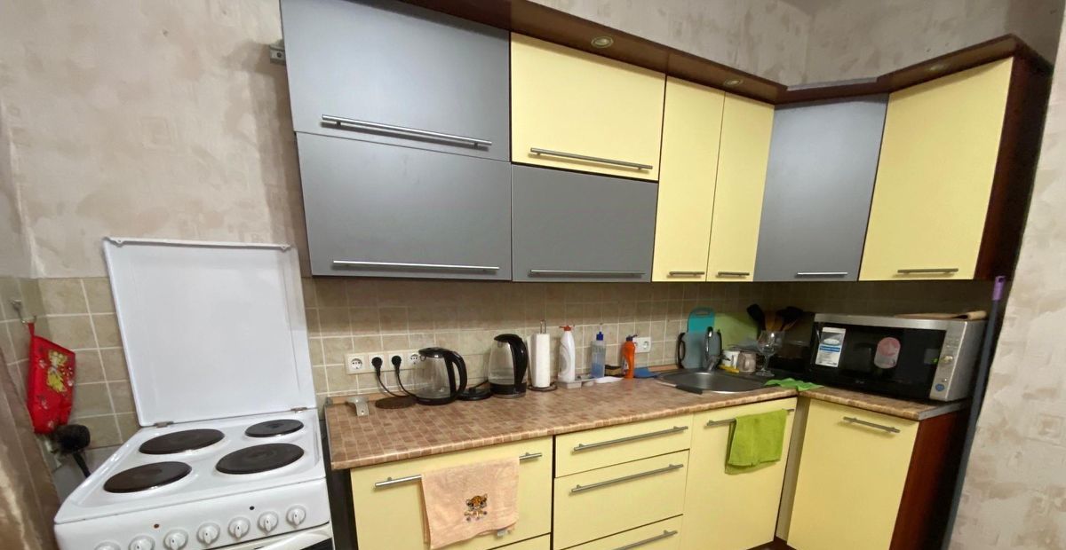 - Просторная со всей необходимой техникой (чайник, холодильник, микроволновка, электрическая плита).
