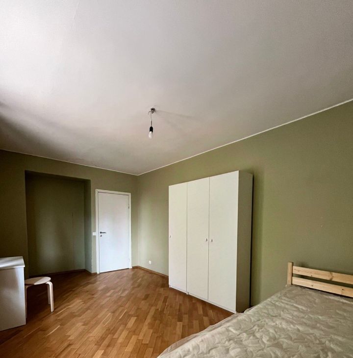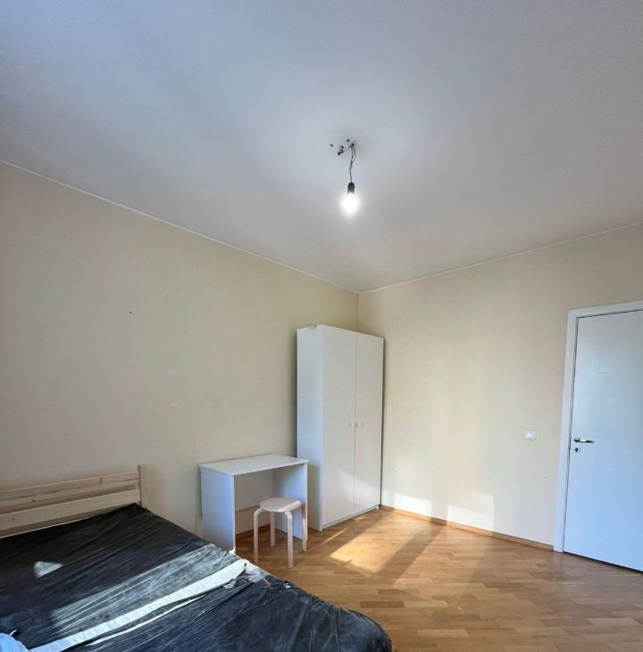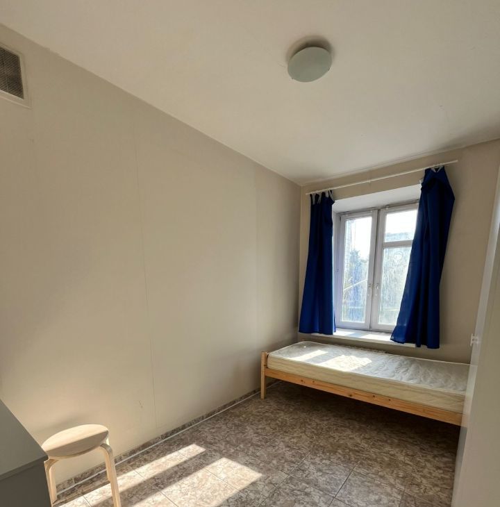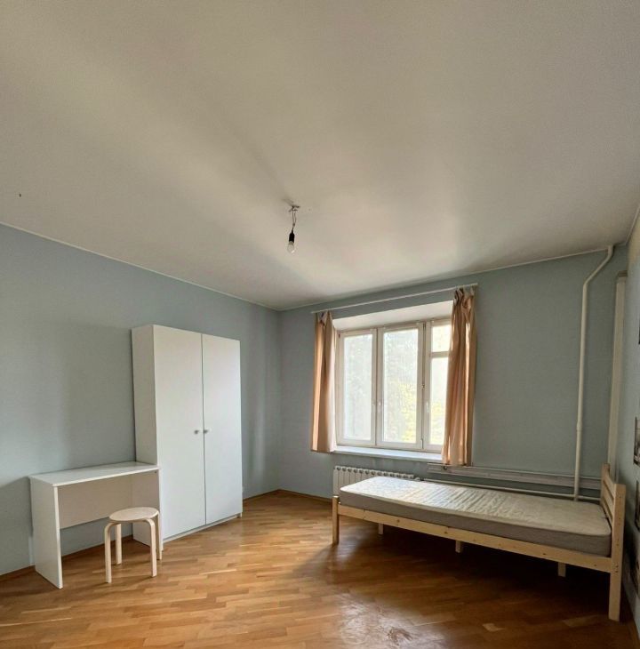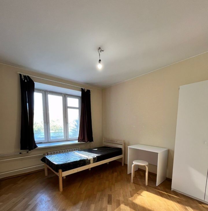В комнате есть спальное место, шкаф, стол со стулом. К заселению в комнату рассматривается один человек. Кухня на всю квартиру одна, один совмещенный санузел, один раздельный. Кухня полностью оборудована. В одной комнате проживает молодой человек(русский).