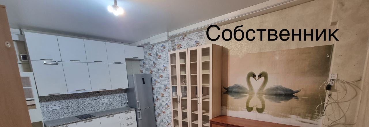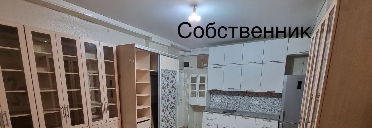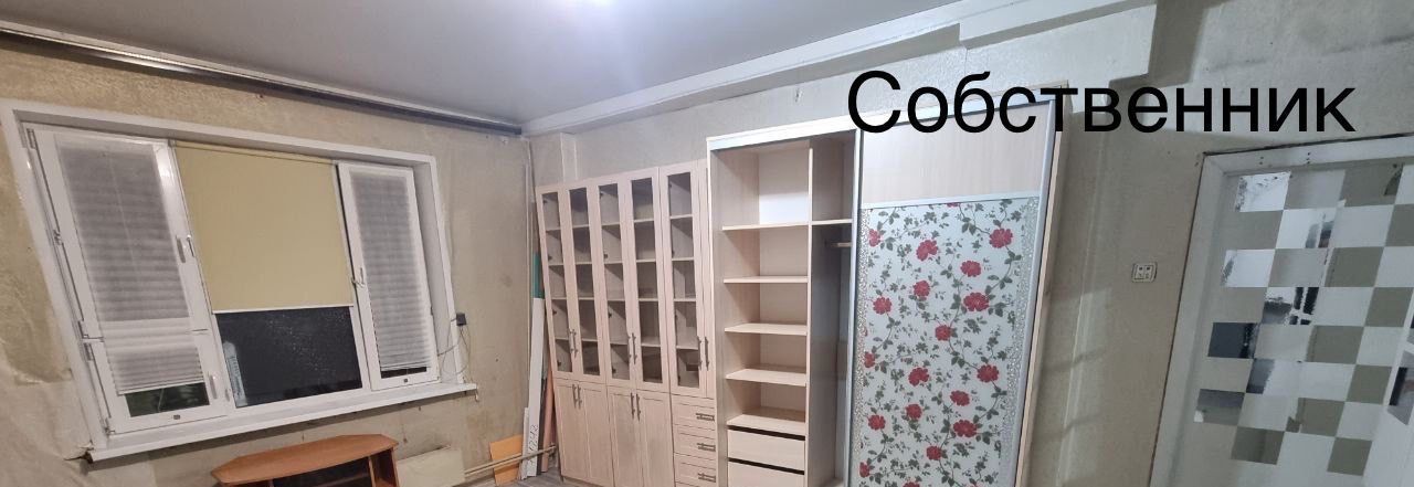 В комнате свежие полы, кухонный уголок с плитой, вытяжкой и холодильником. Имеется платяной шкаф, книжные шкафы-витрины, комод, раскладной модульный диван (нет на фото). Мебель обсуждается.