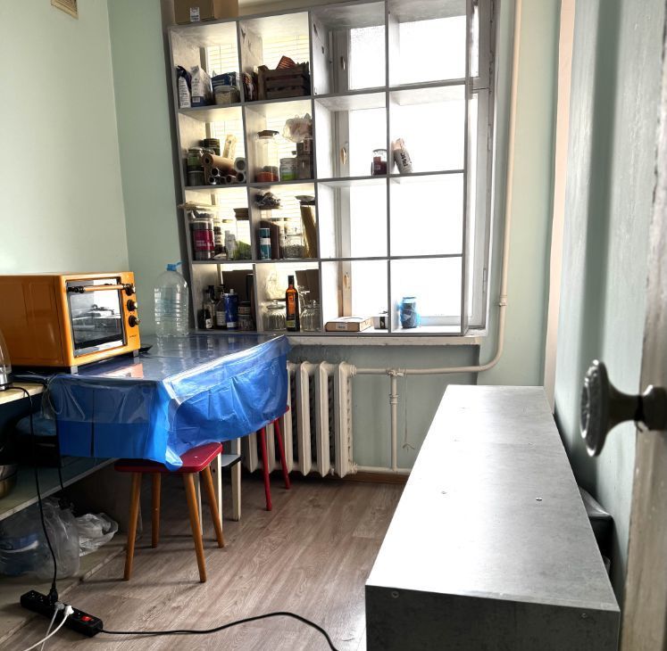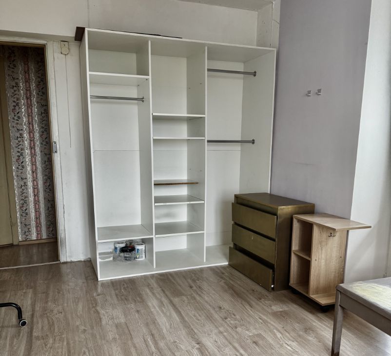 комната: изолированная,закрывается на ключ.все как на фото(столы,гардеробный шкаф,диван,рейл,комод).