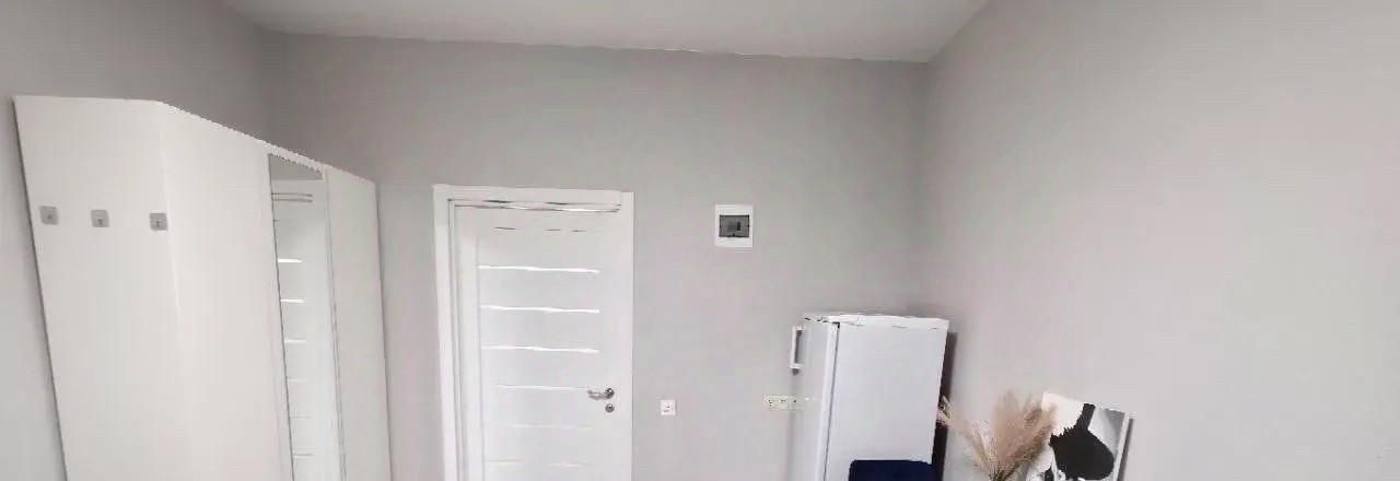 Комната в серо синем тонах приятное сочетание. В комнате новый шкаф с зеркалом в полный рост, вместительный комод , телевизор смарт ТВ (иви , окко И так далее ) подключается по WiFi