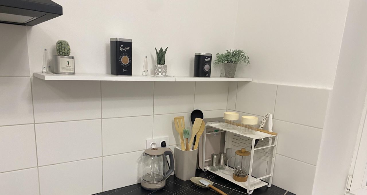 Кухня оборудована всем необходимым свой шкаф, полки , место под посуду и рабочая зона личная под вашу комнату (больше ни кто не пользуется этим местом )