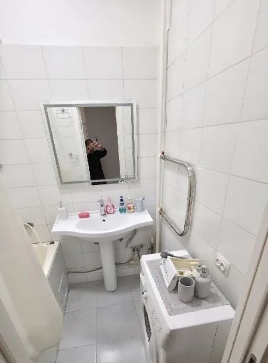 В ванной комнате отдельно личная стиральная машина.