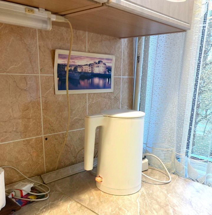 Из бытовой техники: телевизор, отдельный холодильник, отдельная стиральная машина, общий электрический чайник, отдельный пылесос, утюг.