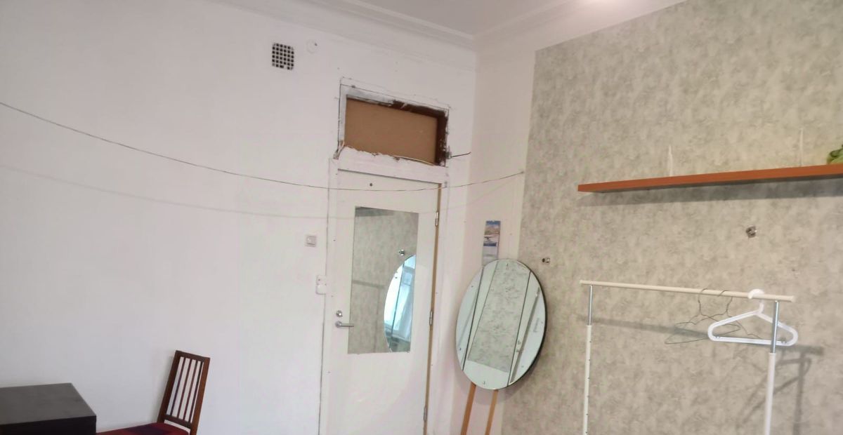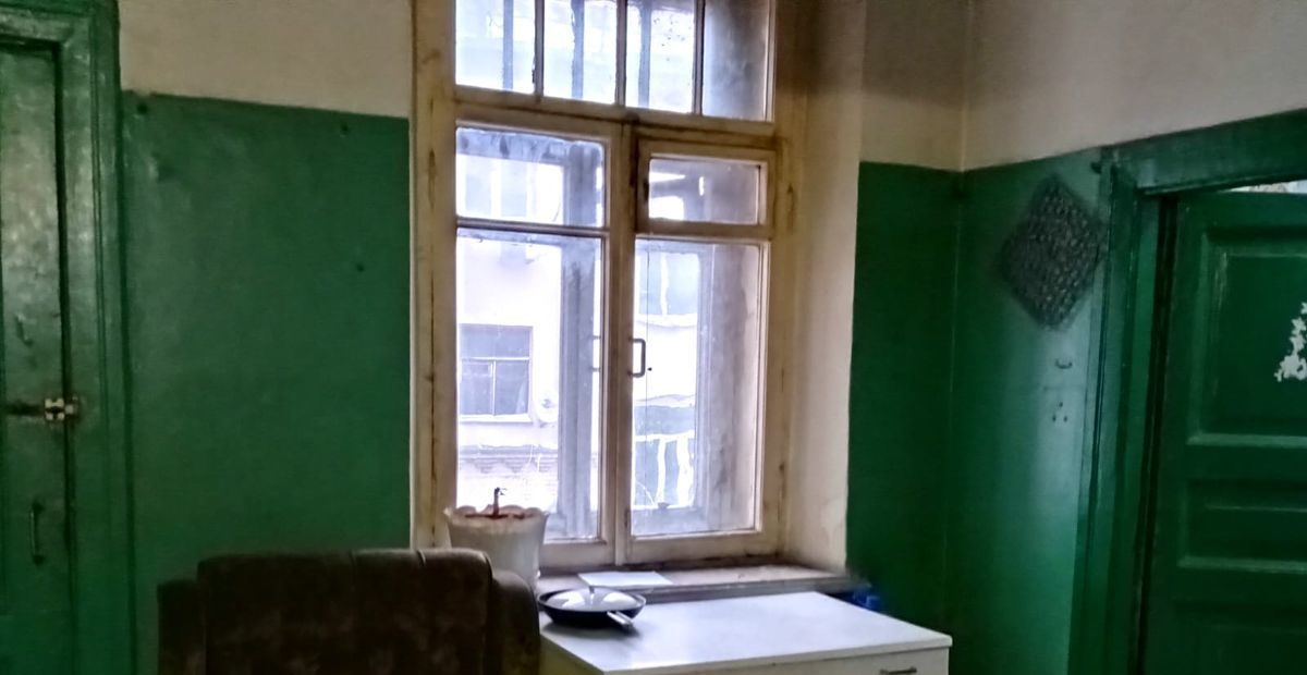 В комнате 2 окна, которые выходят во двор. В квартире проживают всего 2 человека- в одной комнате женщина, в другой мужчина.