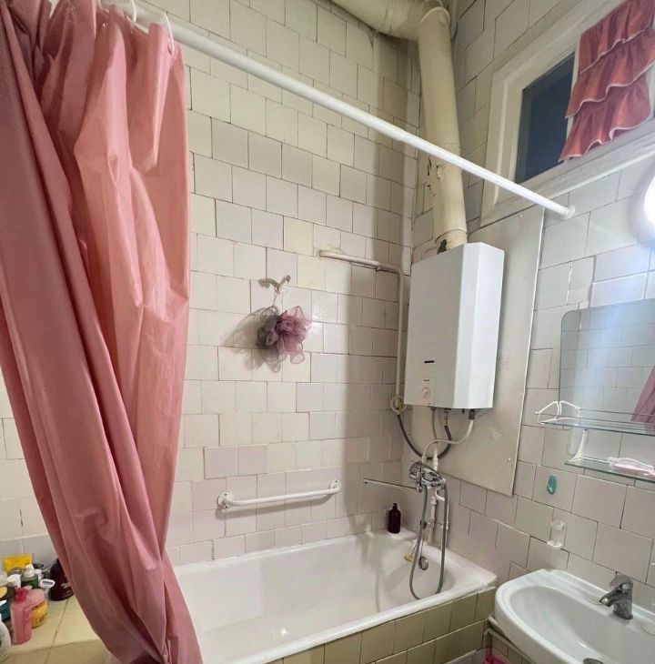 Из мебели - кровать Икея, платяной шкаф, тумба. В ванной в скором времени будет заменен водонагреватель.