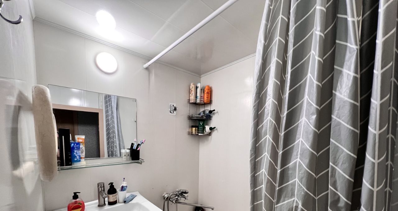 - Просторная с техникой (двухкамерный холодильник, микроволновка, плита).