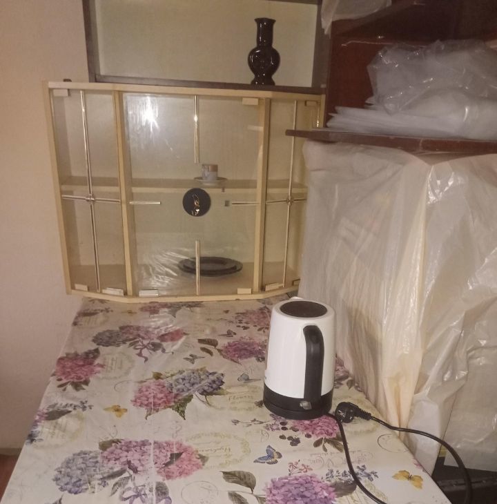 В комнате два дивана, шкафы, тумбочка, два стола, кресло. Отдельный новый холодильник.
