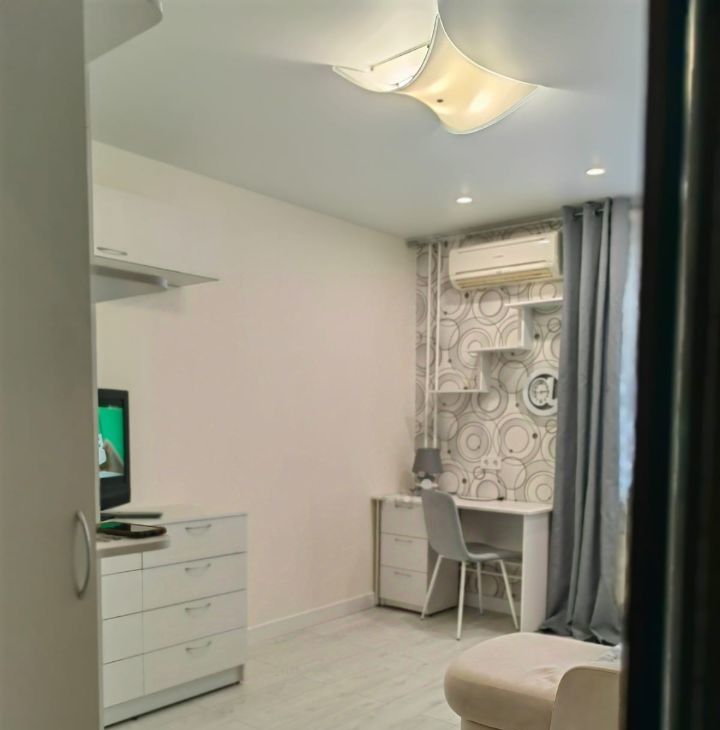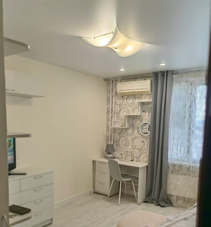 Комната светлая, правильной формы, с ремонтом, полностью готова к проживанию! Есть вся необходимая мебель и бытовая техника, включая кондиционер, стиральную машину, большой двухкамерный холодильник, 2 телевизора в комнате и на кухне, шкафы в комнате и большой шкаф-купе в прихожей, комод, мягкий угловой диван (раскладывается в двуспальную кровать), письменный стол со стулом.