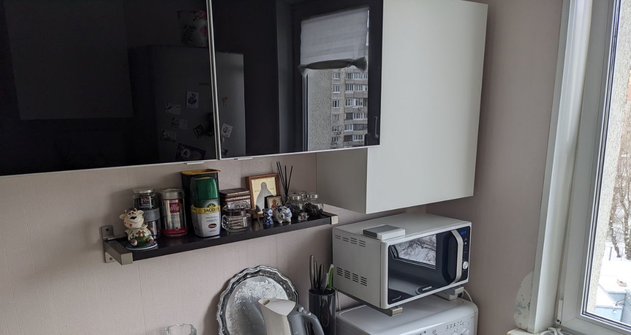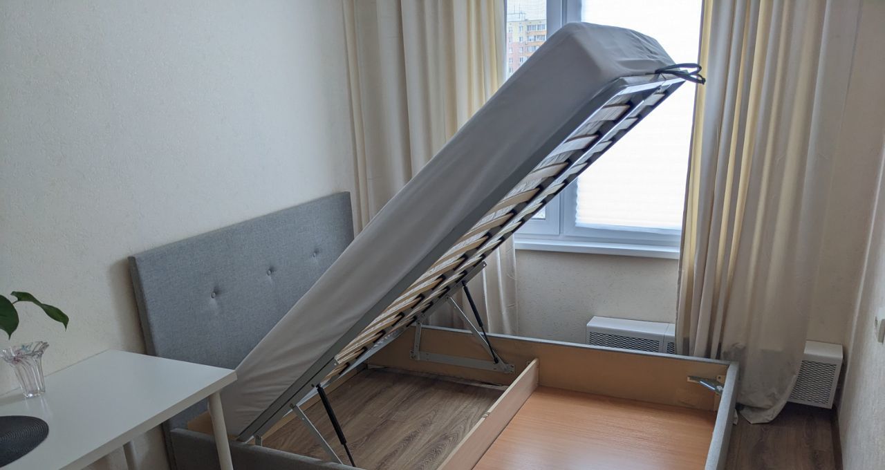 Комната в 3х комнатной квартире. Из мебели кровать с подъемным механизмом askona + новый матрас askona, так же поставим холодильник, шкаф, микроволновку. На кухне отдельная стиральная машина. В квартире есть кошка, соседи женщина + парень.