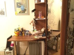 Для 1 девушки. Трехкомнатная квартира живет 2-девушки (снимают). Договор заключается с собственником. В комнате дверь с замком, диван, шкаф, стол письменный, стул, журнальный столик. На кухне гарнитур, стиральная машина, плита, холодильник, обеденный стол, табуреты. На длительный срок.