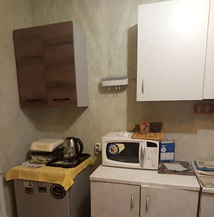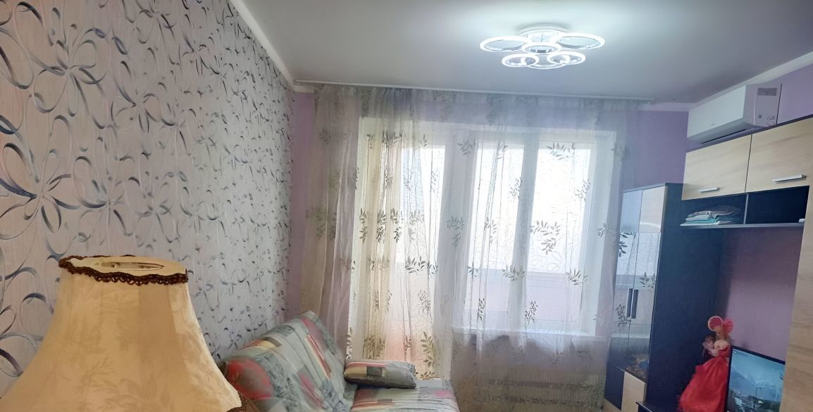 Kомнaтa: комфoртный раскладывающийся диван, мебельный гарнитур, телевизор, балкон, кондиционер, микроволновка, холодильник.