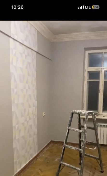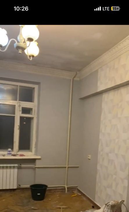 В комнате только что закончен свежий косметический ремонт, поклеены дорогие виниловые обои, заменены радиаторы отопления. В комнате тепло и светло.