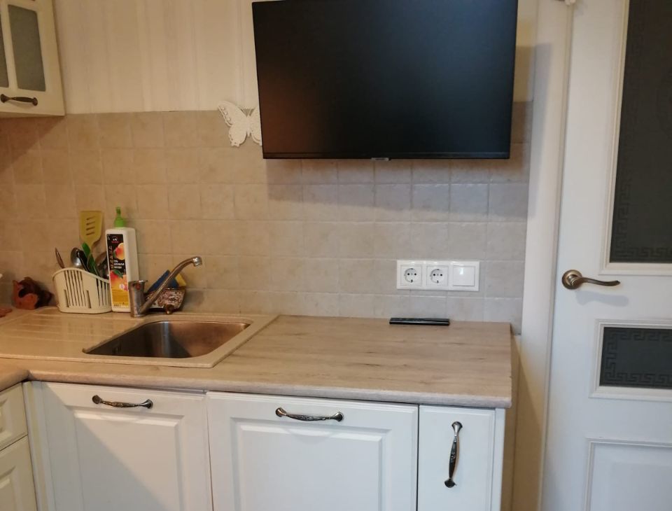 Кухня укомплектована всем необходимым- посудомойка, свч, варочная панель, духовка, холодильник, стиральная машина автомат.