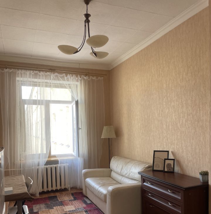 Длительная аренда. Комната со свежим ремонтом, 15 кв.м. Метро 2 минуты пешком. Очень тёплая. Большой новый стеклопакет. Диван кожаный, комод (шпон), стеллаж, вешалка, ковёр. Стол, стул, новый текстиль.