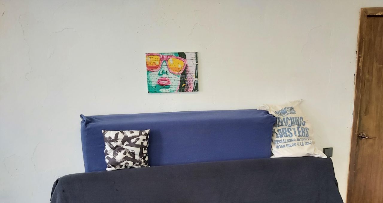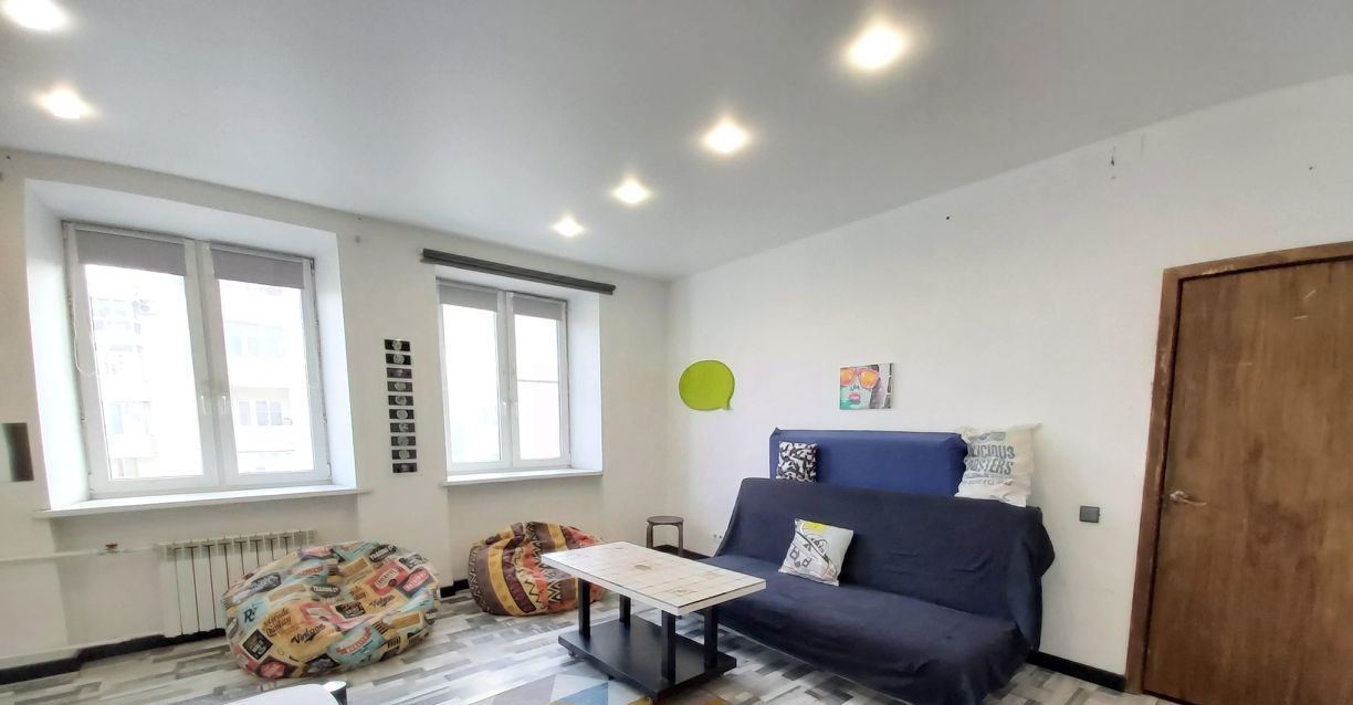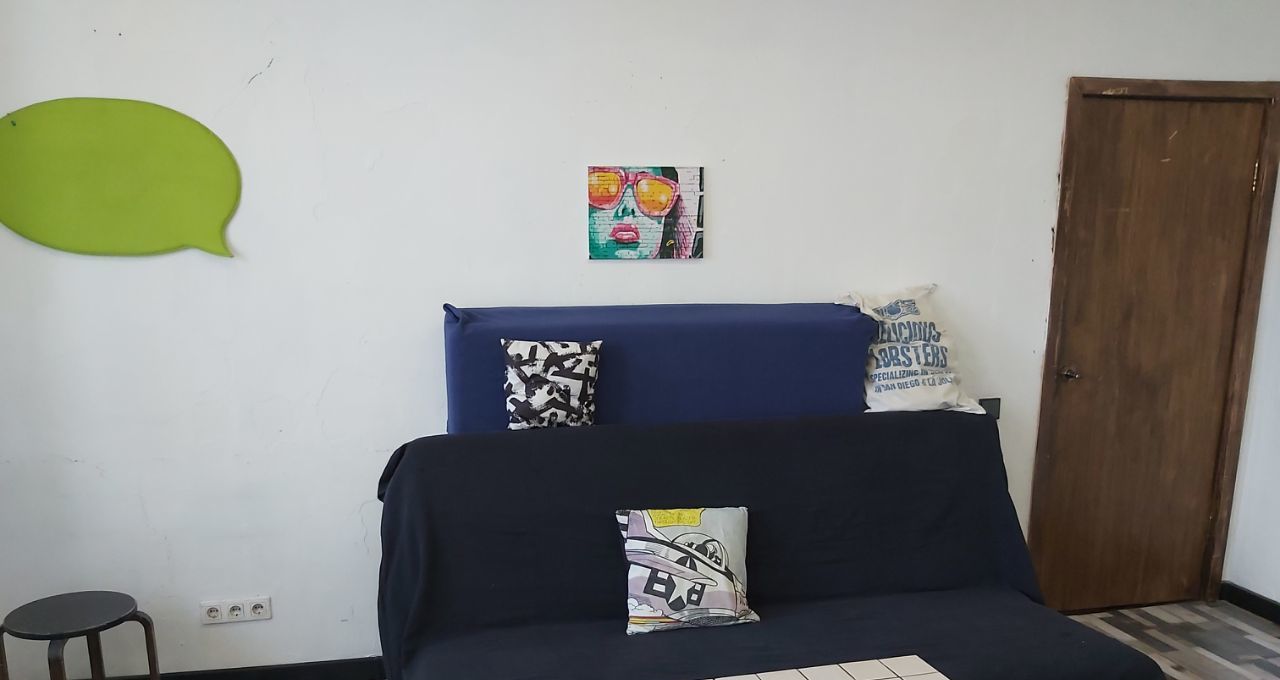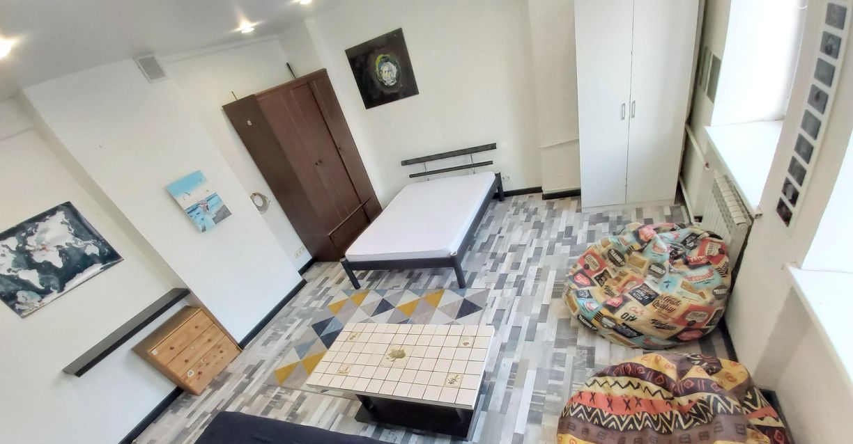 ! Комната имеет свой стиль - солнечный лофт с мебелью (всё для жизни, расслабления и отдыха: дизайнерская двуспальная кровать с ортопедическим матрасом (мягкая и жесткая стороны), раскладной диван, доп.матрас, журнальный столик, 2 шкафа, тумбочка, 2 удобных кресла-пуфа, жалюзи блэкаут, картины - см.фото)