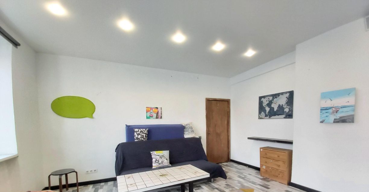 ! Комната имеет свой стиль - солнечный лофт с мебелью (всё для жизни, расслабления и отдыха: дизайнерская двуспальная кровать с ортопедическим матрасом (мягкая и жесткая стороны), раскладной диван, доп.матрас, журнальный столик, 2 шкафа, тумбочка, 2 удобных кресла-пуфа, жалюзи блэкаут, картины - см.фото)