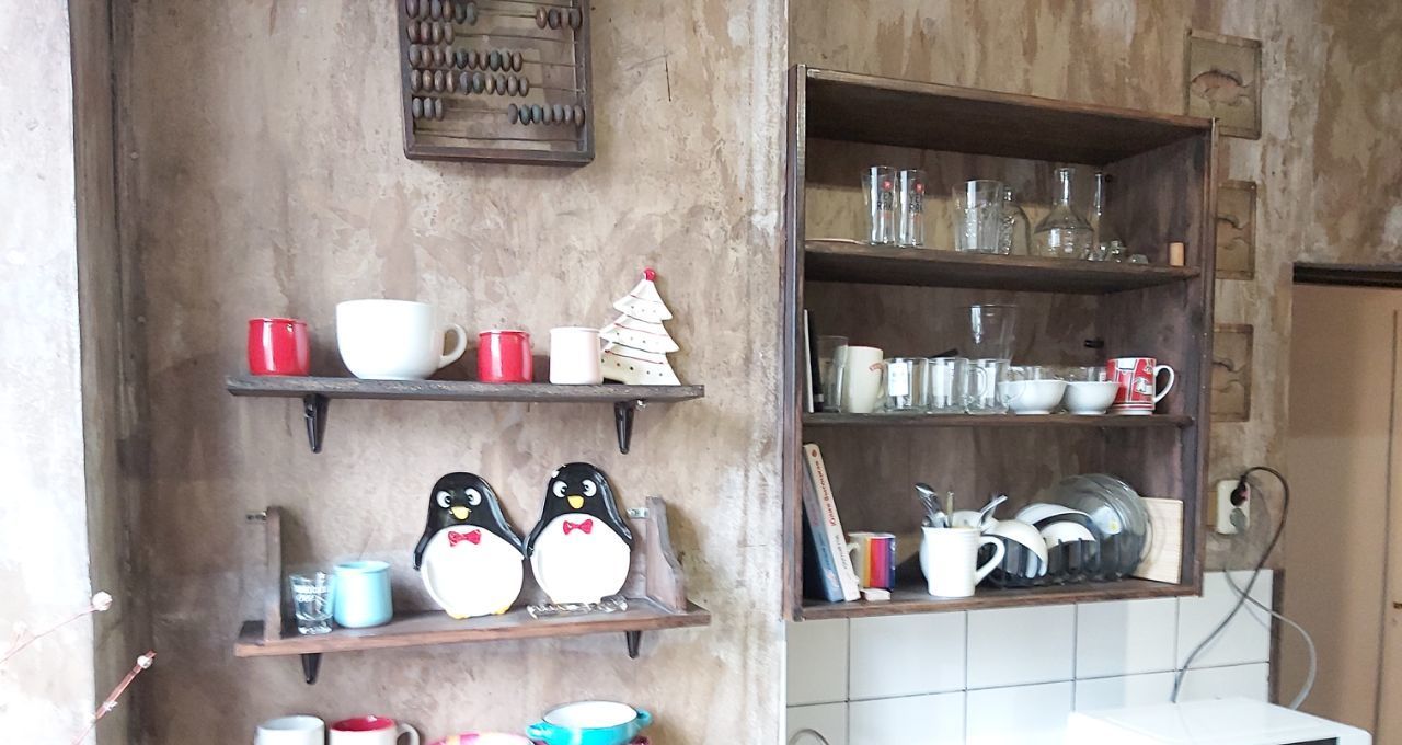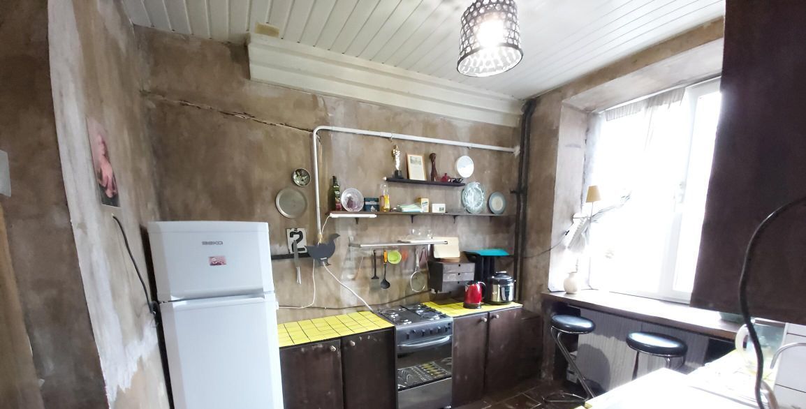 + Атмосферная кухня оборудована техникой и мебелью для приготовления пищи.