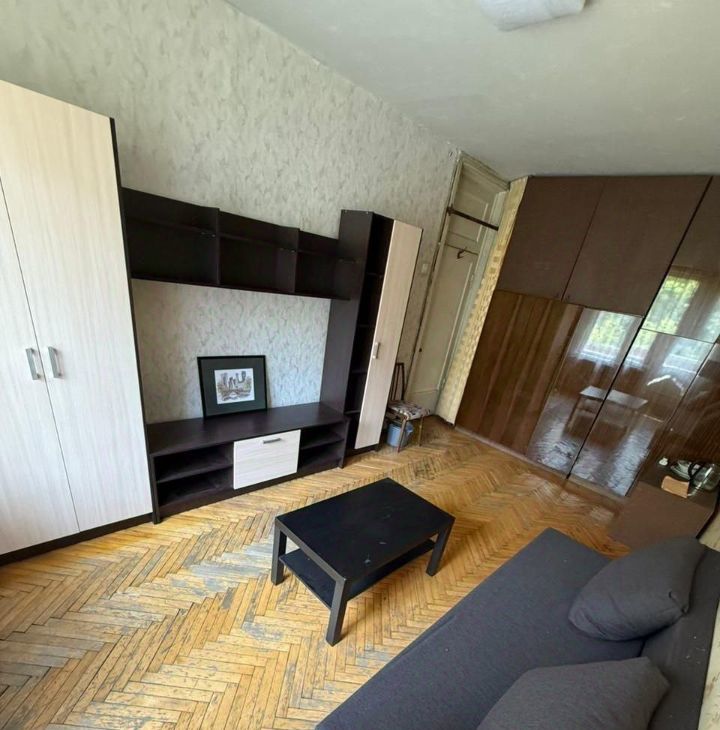 В квартире имеется вся необходимая бытовая техника и мебель в хорошем состоянии. Расположена на пятом этаже пятиэтажного дома без лифта. Окна комнаты выходят в тихий двор. В коридоре и комнате лёгкий косметический ремонт. Санузел раздельный.