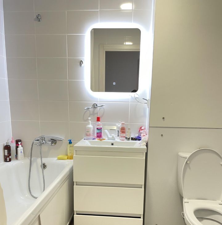 Свежая квартира после ремонта, большая кухня гостиная, с зоной отдыха, 2 раздельных санузла, что очень комфортно.