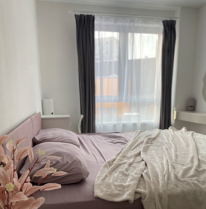 Комната укомплектована новой мебелью и всеми бытовыми принадлежностями, одеяло, подушки, пастельное бельё.