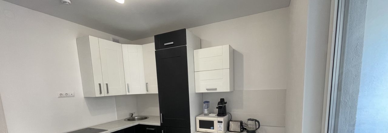 - Просторная со всей встроенной техникой (двухкамерный холодильник, микроволновка, плита).