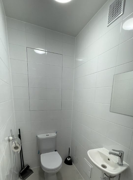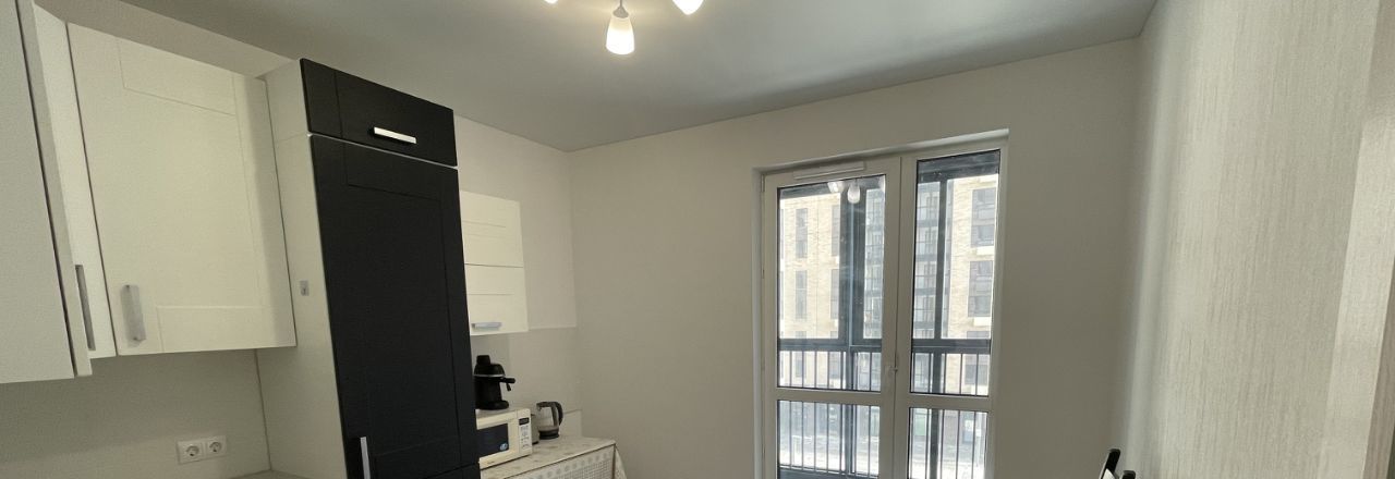- Просторная со всей встроенной техникой (двухкамерный холодильник, микроволновка, плита).