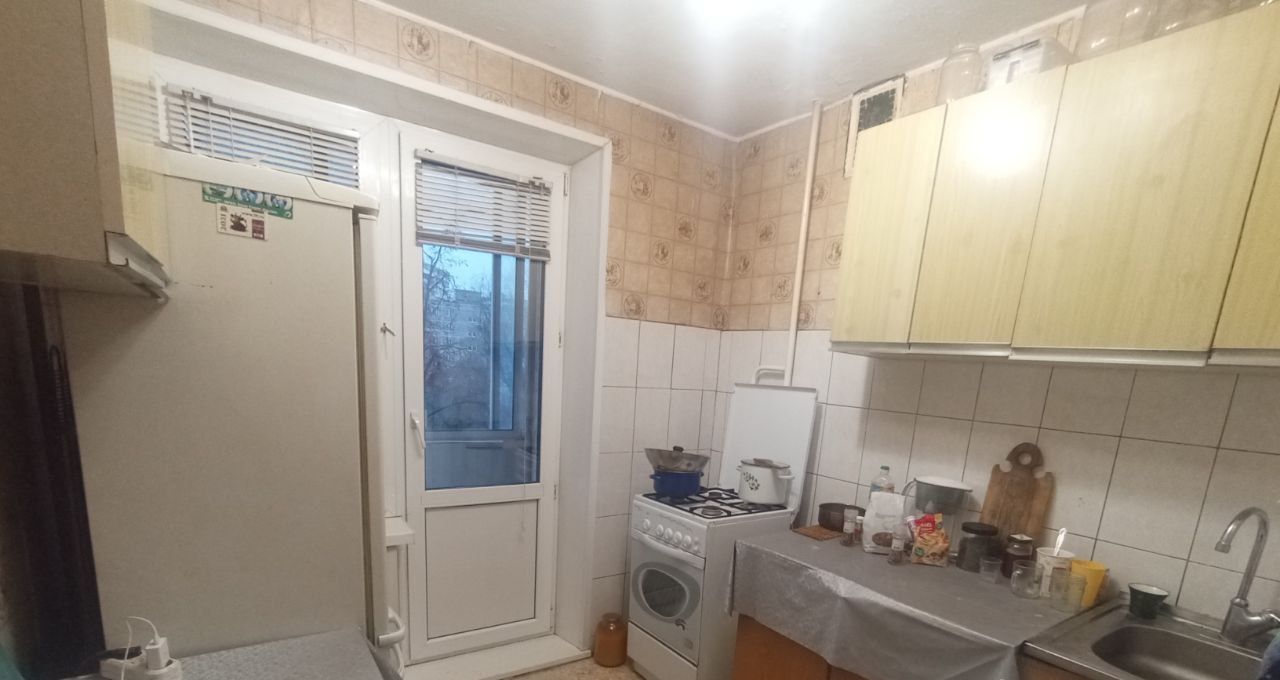Ремонт в квартире старый, но есть все для проживания - стиральная машина, диван, посуда на кухне.