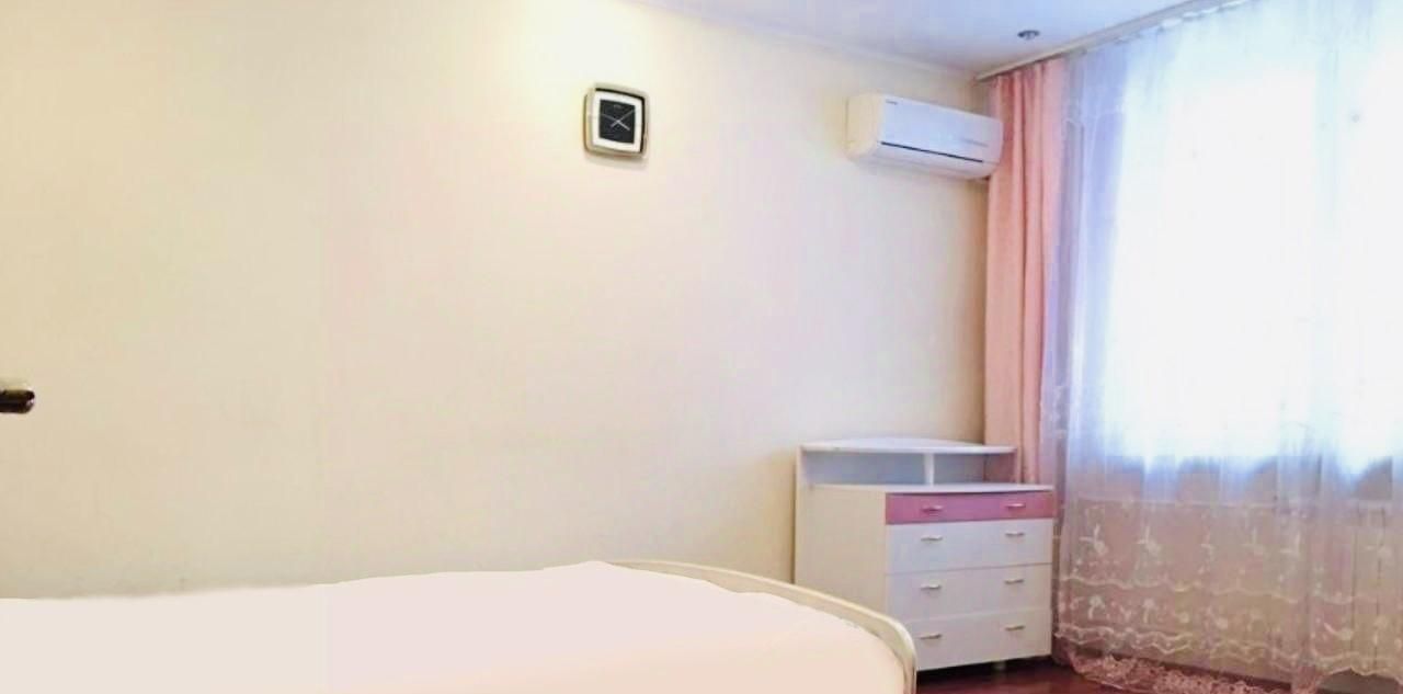 Изолированная комната в двухкомнатной квартире. В комнате есть двухспальная кровать, шкаф, комод.