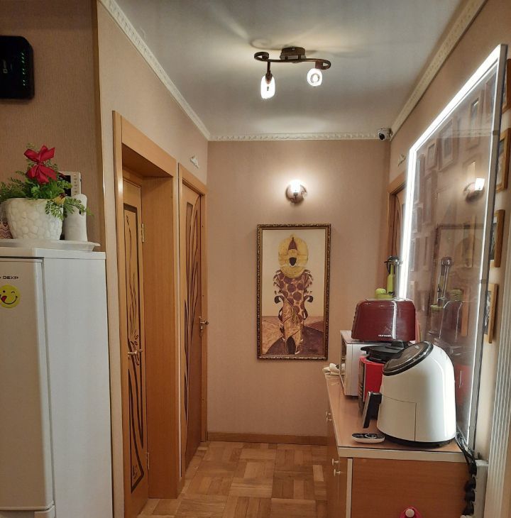 Кухня-4,9 кв. м.укомплектована современной бытовой компьютерной Smart-техникой(без открытого огня), холодильник,бытовая техника.