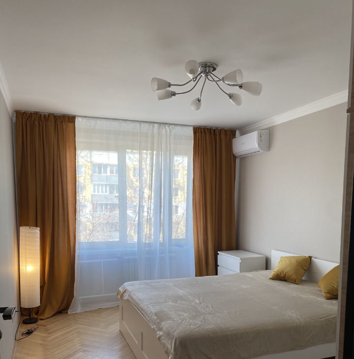 14 кв.м., двуспальная кровать, шкаф с антресолью, комод, новый кондиционер (стоимость аренды 40.000₽)