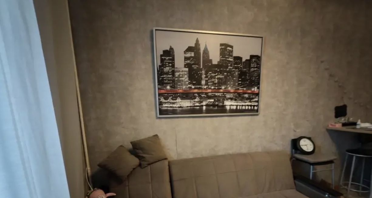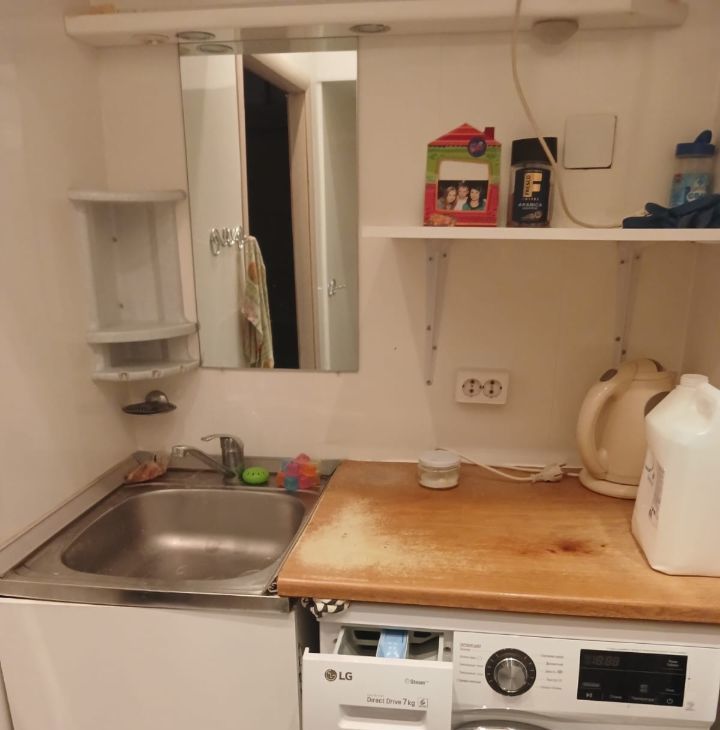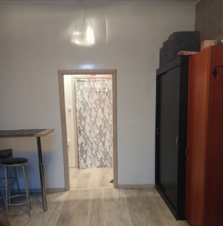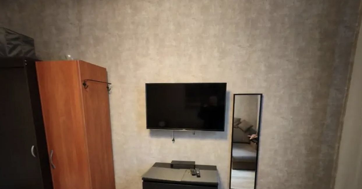 Санузел — по индивидуальному ключу. В комнате — все удобства для проживания, диван, два шкафа, холодильник, телевизор, микроволновка, чайник, раковина, 3 стула, стол, тумба. В том числе, приборы для еды и посуда. Потолки высокие — 3,20 метров. Фото в объявлении актуальные.