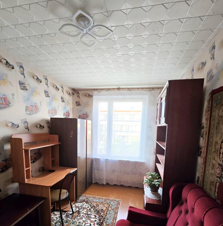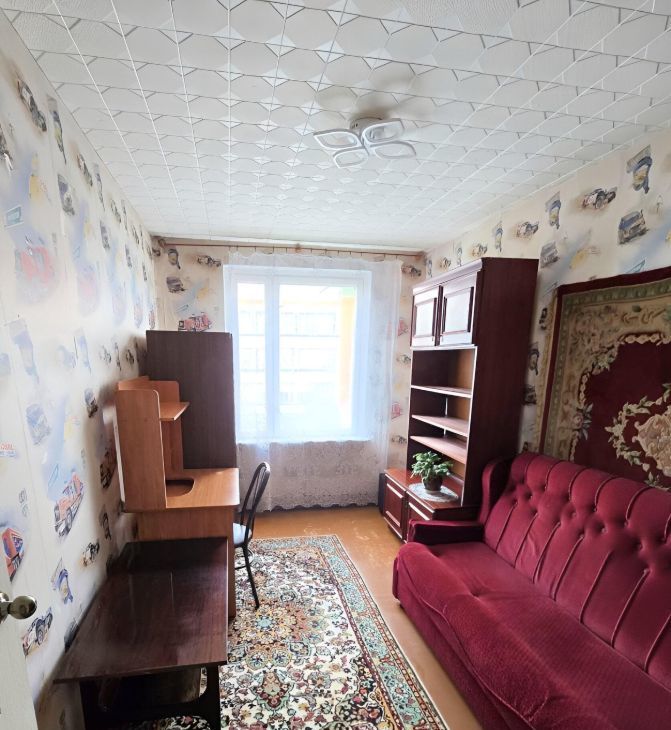 Комната изолированная, в трехкомнатной квартире. Есть мебель и бытовая техника.